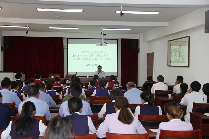 本站訊 6月15日,云南省社會主義學院舉行反恐防恐宣教培訓會。培訓會由學院黨組成員、副院長楊春祿主持,全體教職員工、臨街鋪面承租戶、景星社區相關人員等100多人參加。