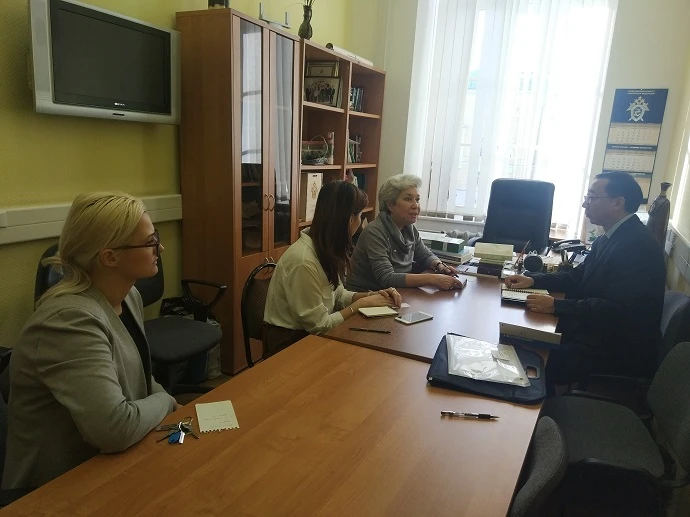 (代表團與莫斯科大學亞非學院國際部負責人舒什基娜·維拉·尼古拉耶夫娜博士進行座談)