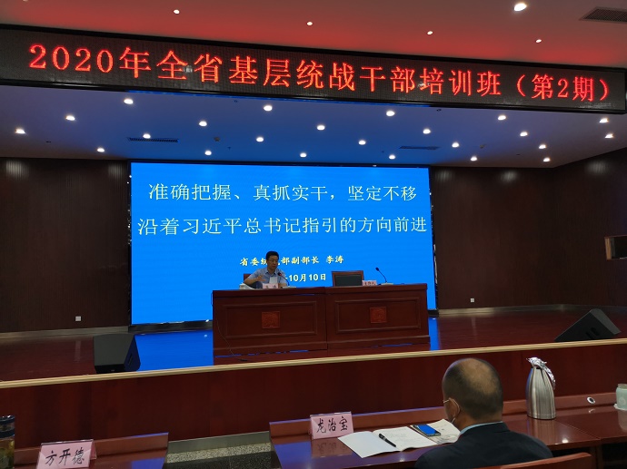 本站訊 10月10日上午,全省基層統(tǒng)戰(zhàn)干部第二期培訓(xùn)班在省社會(huì)主義學(xué)院開(kāi)班,來(lái)自全省16個(gè)州(市)的基層統(tǒng)戰(zhàn)干部和部分高校統(tǒng)戰(zhàn)部的同志,共118人參加了此次培訓(xùn)。省委統(tǒng)戰(zhàn)部副部長(zhǎng)李濤、省社會(huì)主義學(xué)院常務(wù)副院長(zhǎng)何云葵參加開(kāi)班式。本期培訓(xùn)班是在新冠肺炎疫情防控常態(tài)化、決戰(zhàn)決勝脫貧攻堅(jiān)、全面建成小康社會(huì)的關(guān)鍵時(shí)期舉辦的,具有特殊意義,為全省基層統(tǒng)戰(zhàn)干部學(xué)習(xí)最新的理論政策、提升能力素質(zhì)提供了難得的學(xué)習(xí)機(jī)會(huì)。