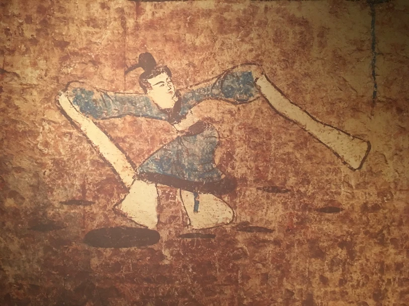 漢代墓穴壁畫,腳踏北斗而舞,反映了中國的舞蹈、百戲(雜耍)、競技體育具有同一源流。