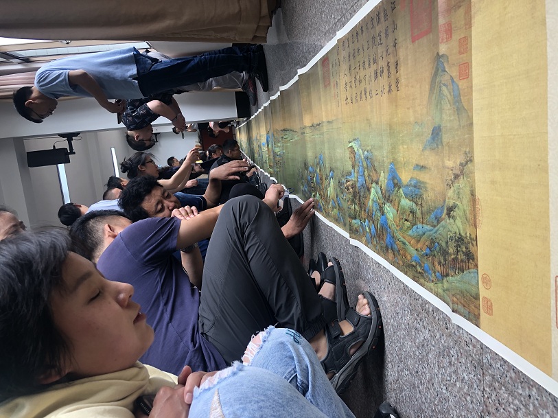蘇升乾教授帶領學員們欣賞《千里江山圖》。