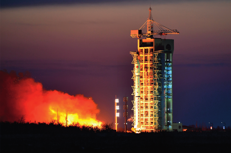 2021年12月10日8時11分,我國在酒泉衛星發射中心用長征四號乙運載火箭,成功將實踐六號 05 組衛星發射升空。這次任務是長征系列運載火箭的第 400 次飛行 汪江波攝 / 本刊