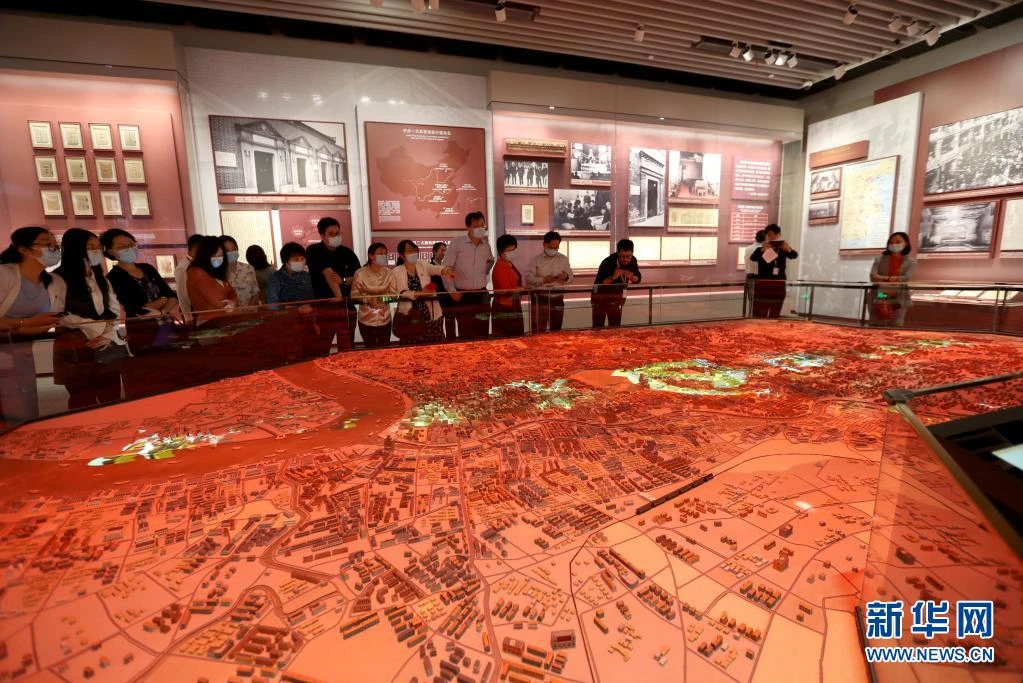 這是6月1日在上海的中共一大紀念館拍攝的“光榮之城”巨型沙盤。新華社記者 劉穎 攝