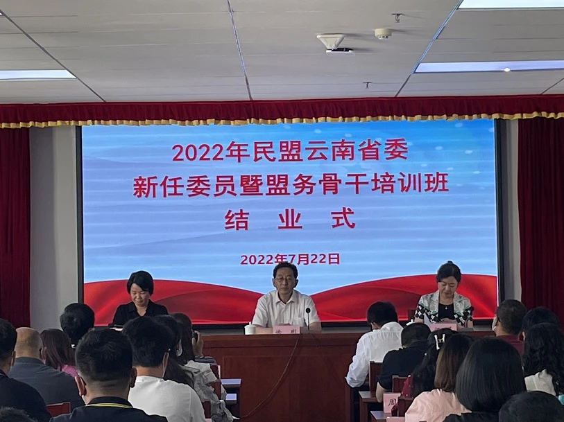 本站訊 云南省社會主義學(xué)院于7月18日至23日舉辦2022年民盟云南省委新任委員暨盟務(wù)骨干培訓(xùn)班。23日下午,云南省政協(xié)副主席、民盟云南省委主委、云南省社會主義學(xué)院院長徐彬出席結(jié)業(yè)式并講話,云南省人大常委會委員、民盟云南省委專職副主委李江虹出席結(jié)業(yè)式,云南省社會主義學(xué)院常務(wù)副院長何云葵主持結(jié)業(yè)式。民盟云南省委新任委員暨盟務(wù)骨干共67人參加本次培訓(xùn)。