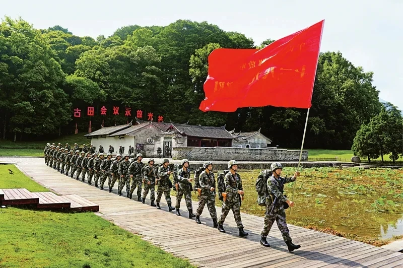弘揚古田會議精神,人民軍隊從古田再出發。圖為駐閩某部組織官兵來到古田會議會址,開展改革強軍主題教育活動。姚安泉/攝