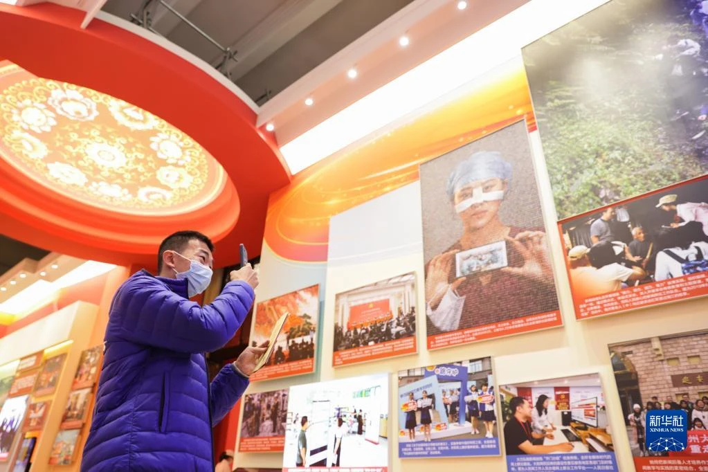 展覽上,一張張圖片生動詮釋黨的創新理論“飛入尋常百姓家”——