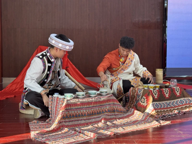 由云南省農業職業技術學院學生表演的“鑄牢中華民族共同體意識——民族茶宴石榴紅”活動讓考察團成員們感受到云南茶文化的魅力。時光遠攝