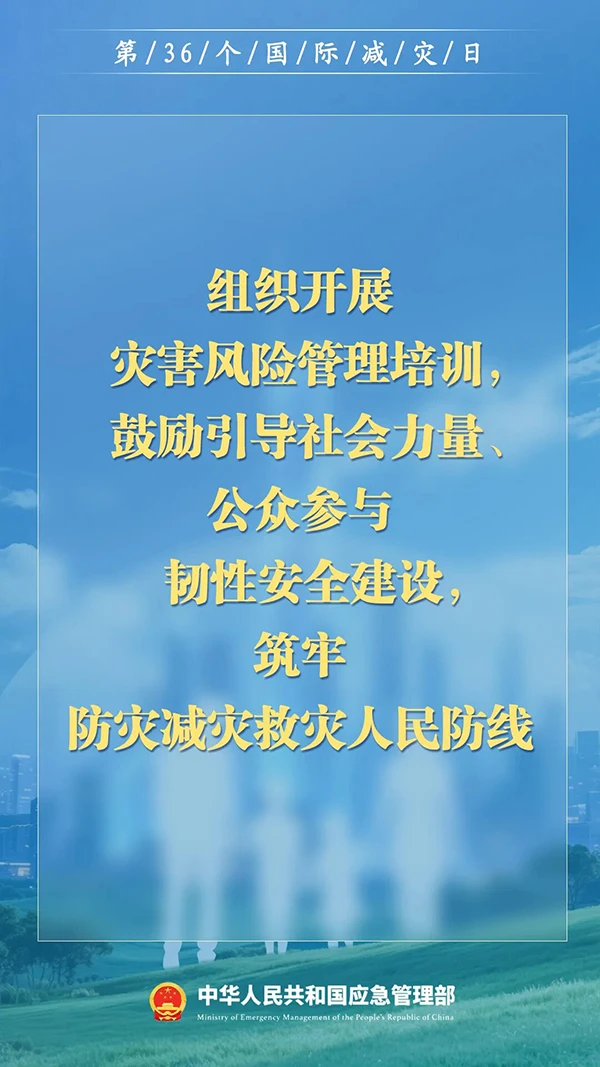 2025年10月13日是第36個國際減災日,主題是“投資韌性建設,提升防災減災能力”。9月29日,國家防災減災救災委員會辦公室印發通知,部署做好2025年國際減災日有關工作。