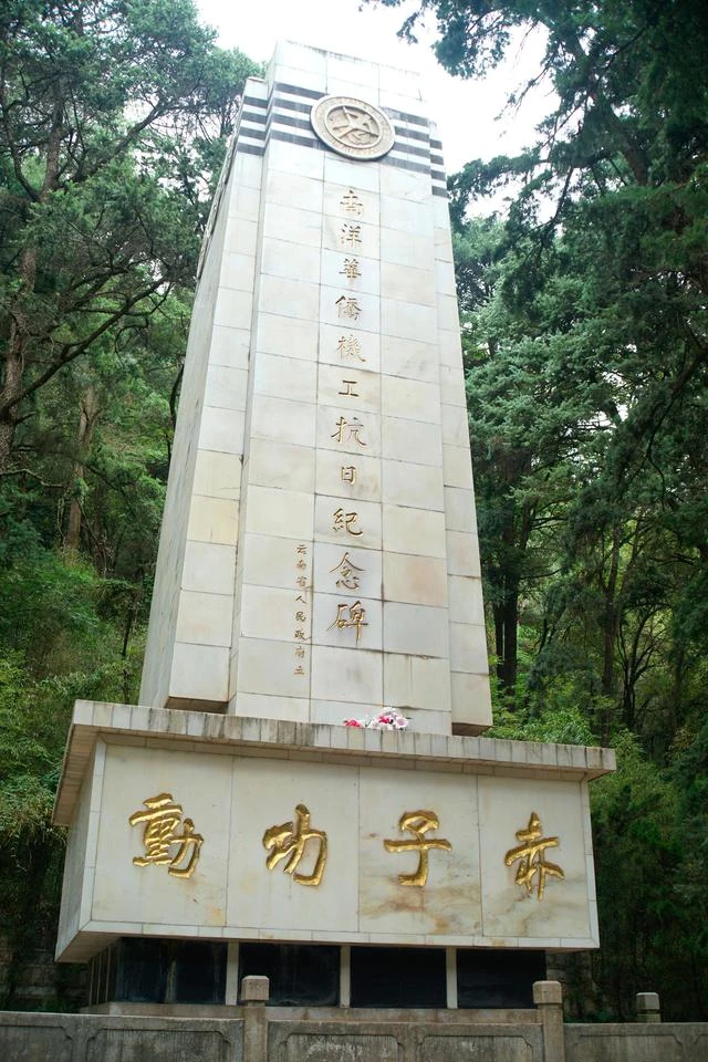 昆明西山南僑機(jī)工抗日紀(jì)念碑位于云南省昆明市西山公園內(nèi),由云南省人民政府于1989年設(shè)立,于2001年被中國僑聯(lián)列為愛國主義教育基地。底座刻有“赤子功勛”四個(gè)字。另有南洋華僑機(jī)工抗日事跡陳列室。在抗日戰(zhàn)爭中,來自馬來西亞、新加坡等地的3200多名華僑青年機(jī)工,組成“南洋華僑機(jī)工回國抗戰(zhàn)服務(wù)團(tuán)”回國支援抗戰(zhàn),在滇緬公路上搶運(yùn)軍需、維護(hù)車輛,有力地支援了抗戰(zhàn),1000余名僑胞為了祖國的抗戰(zhàn)事業(yè)獻(xiàn)出了年輕的生命。