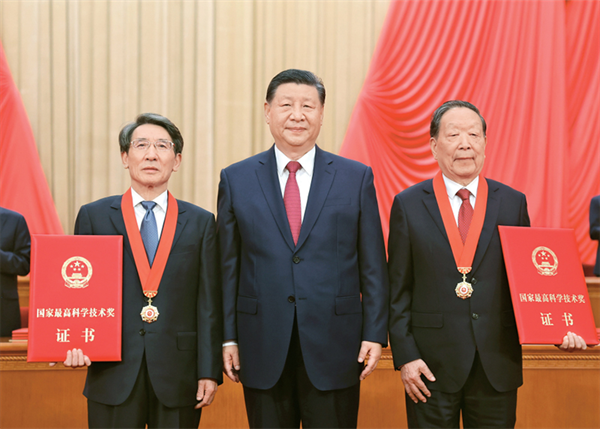 2024年6月24日,全國科技大會、國家科學技術獎勵大會和中國科學院第二十一次院士大會、中國工程院第十七次院士大會在北京人民大會堂隆重召開。中共中央總書記、國家主席、中央軍委主席習近平向獲得2023年度國家最高科學技術獎的武漢大學李德仁院士(右)和清華大學薛其坤院士(左)頒獎。記者 鞠鵬 攝