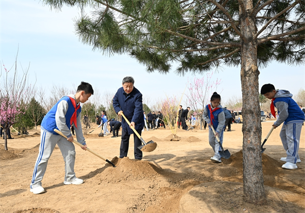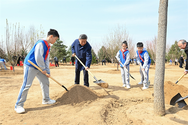 在京中共中央政治局委員、中央書記處書記、國務委員等參加植樹活動。