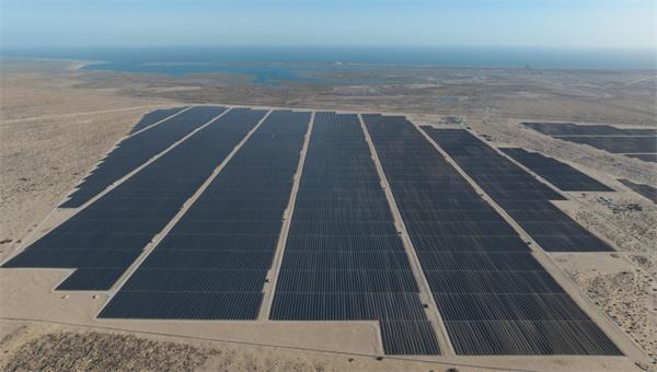 這是2025年4月2日在墨西哥佩尼亞斯科港附近拍攝的中國能源建設(shè)集團(tuán)承建的佩尼亞斯科港光伏項(xiàng)目二期工程(無人機(jī)照片)。新華社記者 李夢(mèng)馨 攝