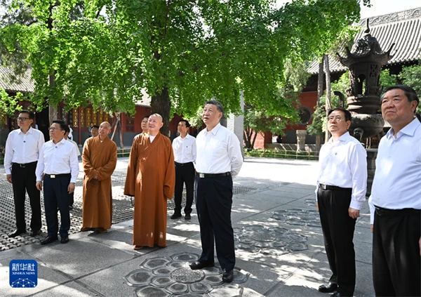 5月19日至20日,中共中央總書記、國家主席、中央軍委主席習近平在河南考察。這是19日下午,習近平在洛陽白馬寺考察。新華社記者 燕雁 攝