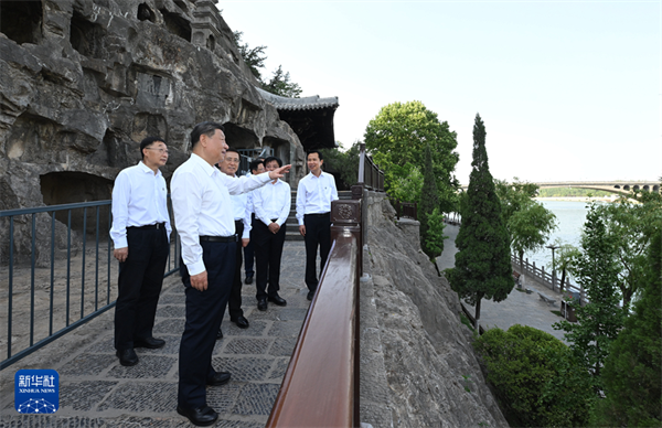 5月19日至20日,中共中央總書記、國家主席、中央軍委主席習近平在河南考察。這是19日下午,習近平在洛陽龍門石窟考察。新華社記者 謝環馳 攝