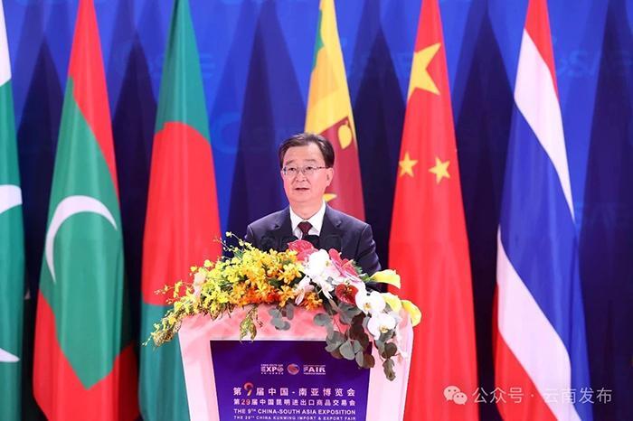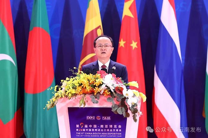 云南省委書記王寧、商務(wù)部副部長(zhǎng)鄢東致辭,云南省省長(zhǎng)王予波主持開(kāi)幕式。