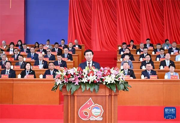 8月21日上午,西藏各族各界干部群眾約2萬人歡聚拉薩市布達拉宮廣場,熱烈慶祝西藏自治區成立60周年。中共中央政治局常委、全國政協主席、中央代表團團長王滬寧出席并講話。新華社記者 李響 攝