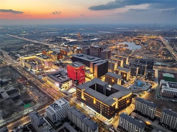 雄安商務(wù)服務(wù)中心夜景(2025年3月15日攝,無人機(jī)照片)。新華社記者 牟宇 攝