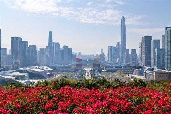 從深圳蓮花山山頂俯瞰城市中軸線(2025年1月29日攝)。新華社記者 梁旭 攝