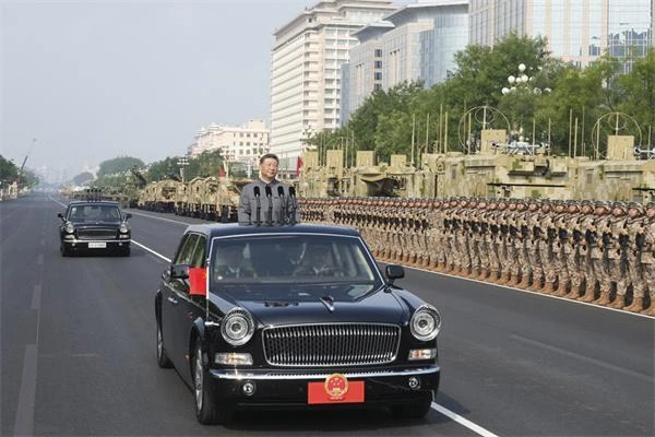 雄壯的軍樂聲中,習近平乘車沿著寬闊的長安街,依次檢閱13個徒步方隊、1個戰旗方隊、22個裝備方隊。受閱部隊軍容嚴整、意氣風發,鐵甲戰車整齊列陣、威風凜凜。這是人民軍隊奮進建軍百年的嶄新亮相,這是中華民族捍衛世界和平的堅定宣示。