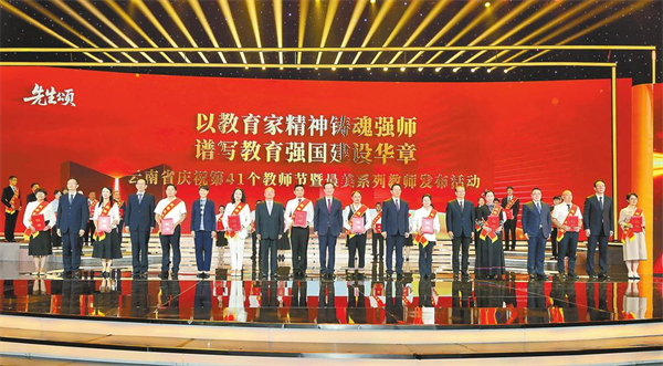 9月9日,云南省慶祝第41個(gè)教師節(jié)暨最美系列教師發(fā)布活動(dòng)在昆明舉行,認(rèn)真學(xué)習(xí)貫徹習(xí)近平總書記重要指示精神,向全省廣大教師和教育工作者致以節(jié)日祝賀和誠(chéng)摯問候,勉勵(lì)大家牢記總書記囑托,大力弘揚(yáng)教育家精神,牢記為黨育人、為國(guó)育才的初心使命,潛心教書育人、培根鑄魂,辦好人民滿意的教育。