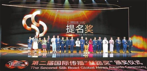 開幕式上,與會領(lǐng)導(dǎo)為第二屆國際傳播“絲路獎”獲獎代表頒獎。媒體代表啟動了“一帶一路”中外媒體采訪行。“大道同行、和合共生”絲路故事匯分文明互鑒、合作共贏、民心相通三個篇章展開,《揚帆致遠》《錦繡絲路》《“小而美”溫暖力量》等節(jié)目,生動講述各國人民交往交流、攜手發(fā)展的故事。