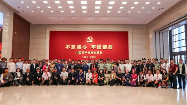參觀團成員在中國共產黨歷史展覽館合影。圖片來源:民族畫報
