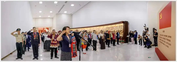 在中國共產黨歷史展覽館,參觀團成員莊嚴宣誓。林毅攝影工作室 攝
