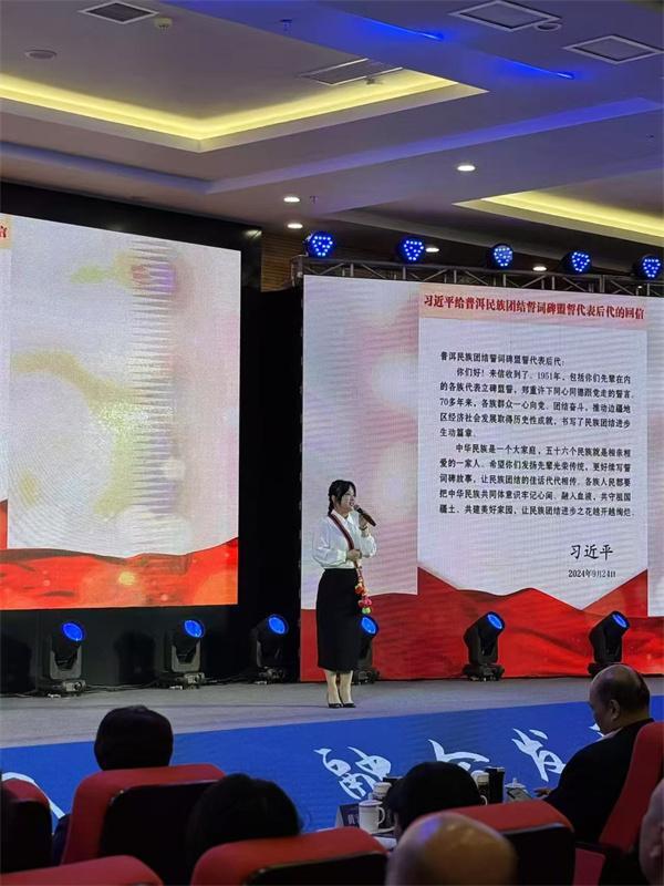 活動現場,兩岸同胞共同觀看講述“新中國民族團結第一碑”的民族團結誓詞碑短片《誓詞》,共同感受先輩們對于民族團結的莊嚴承諾。活動還邀請了寧洱縣干部現場講述寧洱各族人民弘揚“民族團結誓詞碑”光榮傳統,維護民族團結、邊疆穩固的動人故事。在經典傳誦活動中,兩岸同胞以中華經典和文化為橋,誦讀《鄉愁》《國立西南聯合大學紀念碑碑文》等。參加活動的臺灣同胞表示,通過此次活動不僅重溫了民族團結的歷史記憶,而且通過詩文傳誦、歌舞交流,更深切感受到中華文化的博大精深,相信中華文化的傳承與發展永不停步,兩岸的情誼也將在文化的交流中不斷升華。