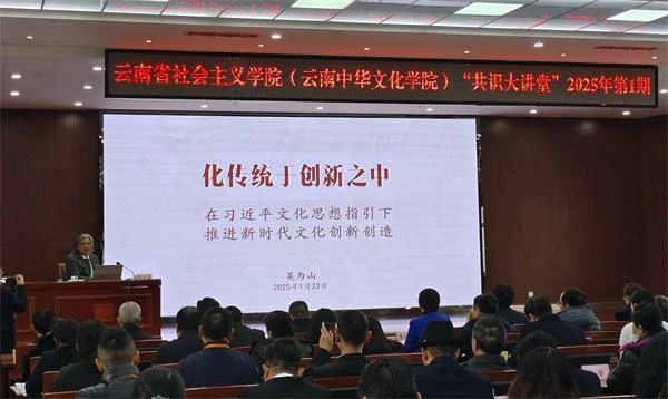 本站訊 2025年1月22日上午,云南省社會主義學(xué)院(云南中華文化學(xué)院)2025年第1期“共識大講堂”開講。本期“共識大講堂”特別邀請民盟中央專職副主席、中國美術(shù)館館長吳為山教授作題為“化傳統(tǒng)于創(chuàng)新之中——在習(xí)近平文化思想指引下推進新時代文化創(chuàng)新創(chuàng)造”的專題講座。