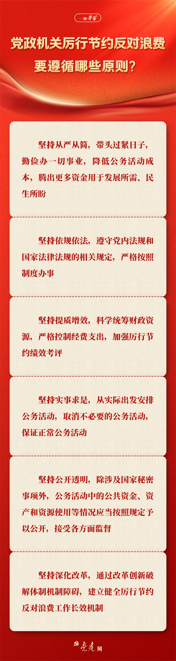 厲行節約、反對浪費是我們黨的光榮傳統和優良作風。近日,在深入貫徹中央八項規定精神學習教育持續走深走實之際,中共中央、國務院印發了修訂后的《黨政機關厲行節約反對浪費條例》,進一步擰緊黨政機關帶頭過緊日子的制度螺栓。《條例》對黨政機關厲行節約反對浪費應遵循的原則作出明確規定,快來一圖學習!